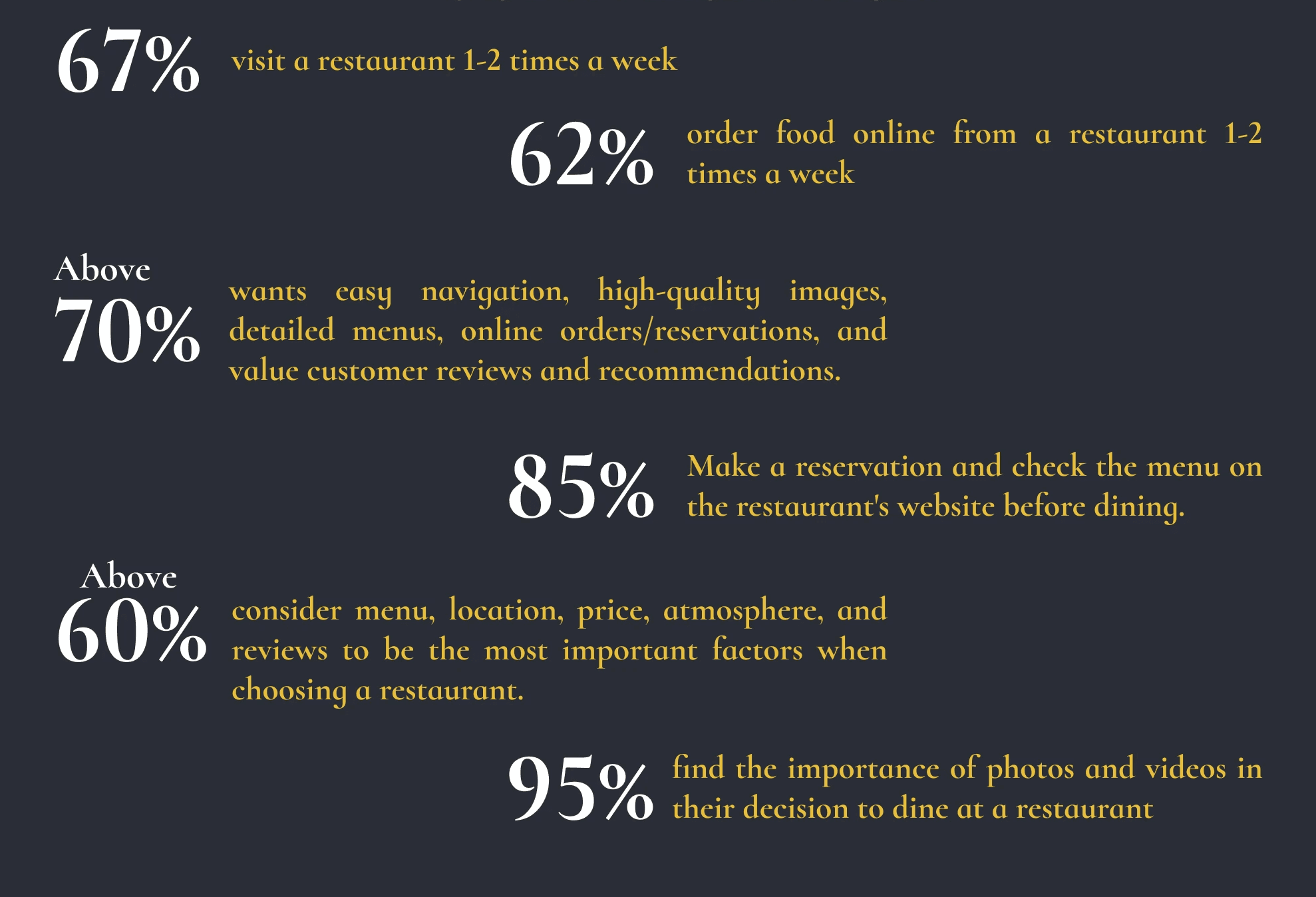 60% of respondents found that the ingredients list for dishes was incomplete, and reported that vegetarian options were not clearly